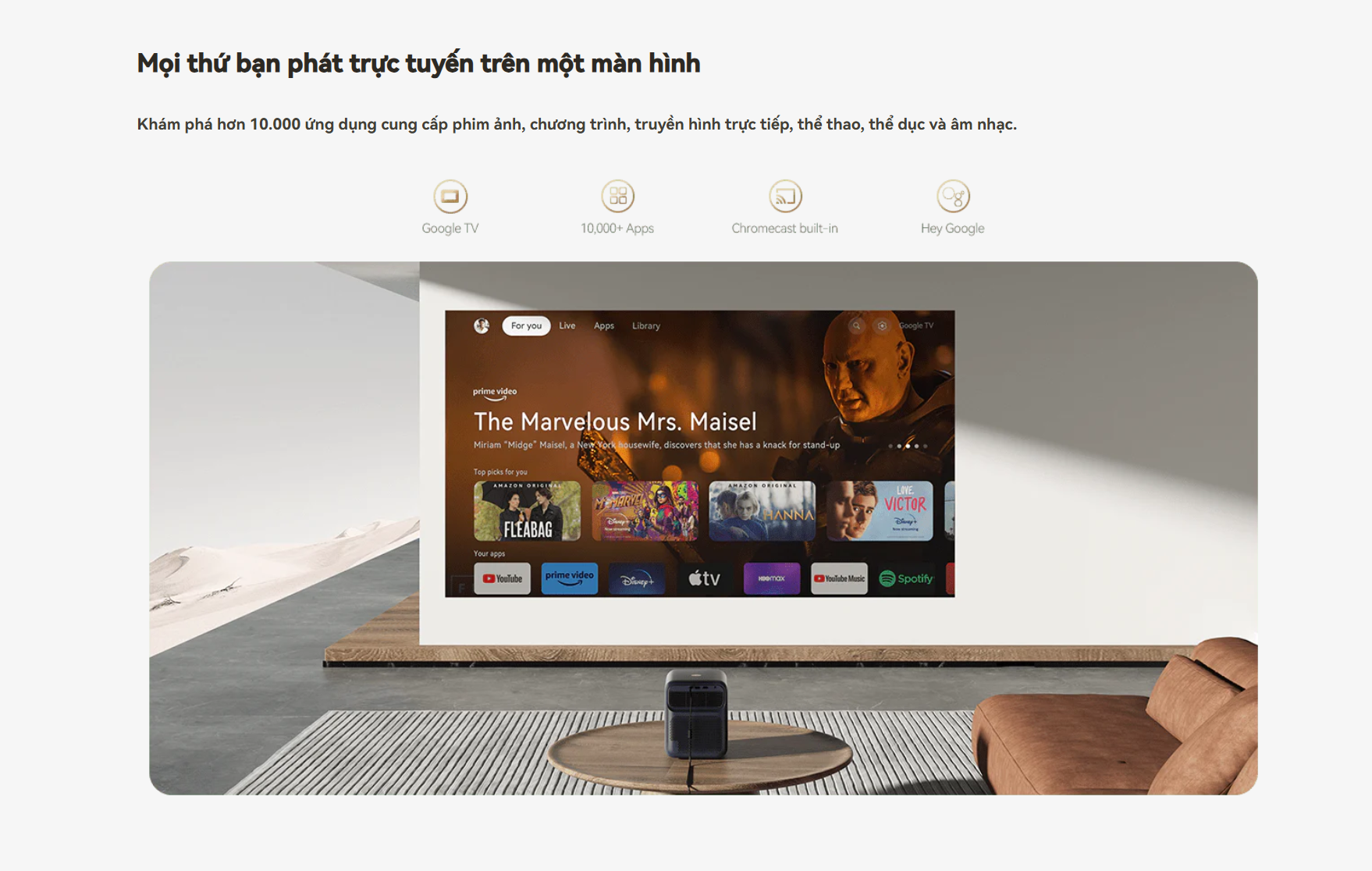 Khác biệt lớn nhất giữa Mozart 1 Pro cũ và bản nâng cấp 2025 chính là nền tảng hệ điều hành. Phiên bản mới tích hợp Google TV, hỗ trợ tìm kiếm bằng giọng nói, truy cập hơn 10.000 ứng dụng như YouTube, Netflix, Disney+, Spotify… dễ dàng. Giao diện thông minh, mượt mà và thân thiện với người dùng giúp mọi thao tác trở nên nhanh chóng, tiện lợi.