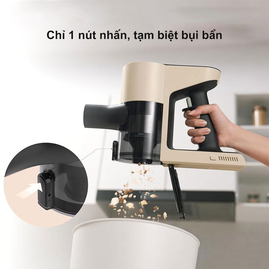 Máy hút bụi cầm tay Roborock H5 không chỉ mạnh mẽ mà còn mang lại trải nghiệm sử dụng thoải mái và tiện lợi với những tính năng thiết kế tinh tế. Việc làm sạch Roborock H5 trở nên đơn giản hơn bao giờ hết với tính năng một chạm đổ bụi. Chỉ cần một nút bấm, bạn có thể xả toàn bộ bụi bẩn từ thùng chứa mà không cần phải tiếp xúc trực tiếp, giữ tay bạn luôn sạch sẽ và đảm bảo sự tiện lợi trong việc bảo trì máy.