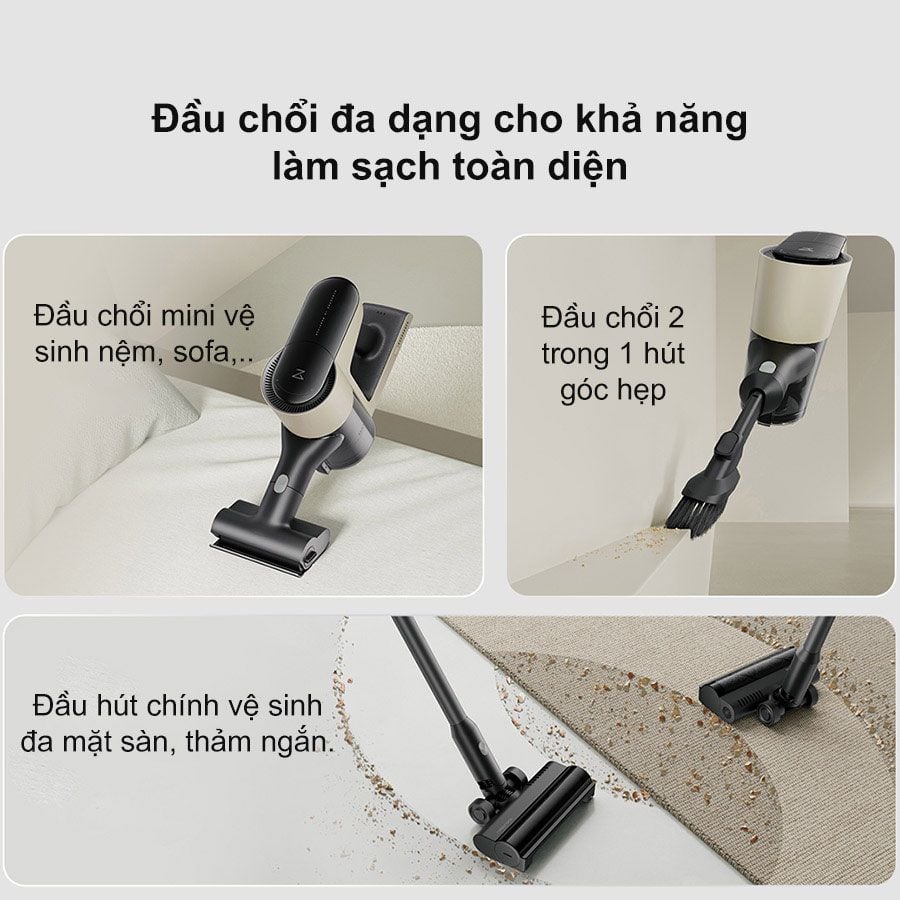 Đầu chổi đa dạng cho khả năng làm sạch toàn diện