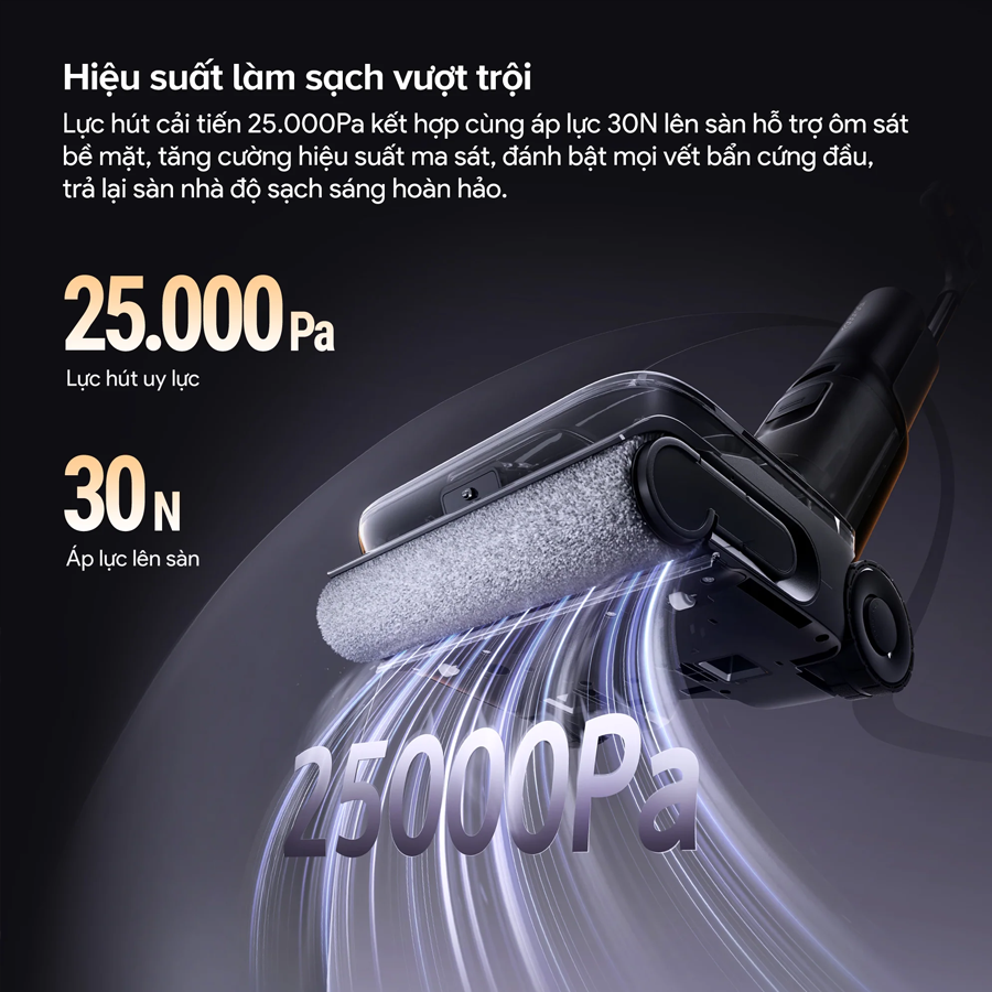 Lực hút 25.000Pa – Nhận diện độ bẩn theo thời gian thực