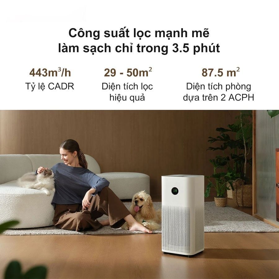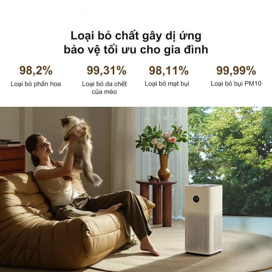- Bộ lọc hiệu suất cao của Xiaomi: Đạt hiệu quả loại bỏ đến 99.98% bụi mịn 0,3μm, xử lý tốt PM2.5, phấn hoa và cả khói thuốc lá thụ động.