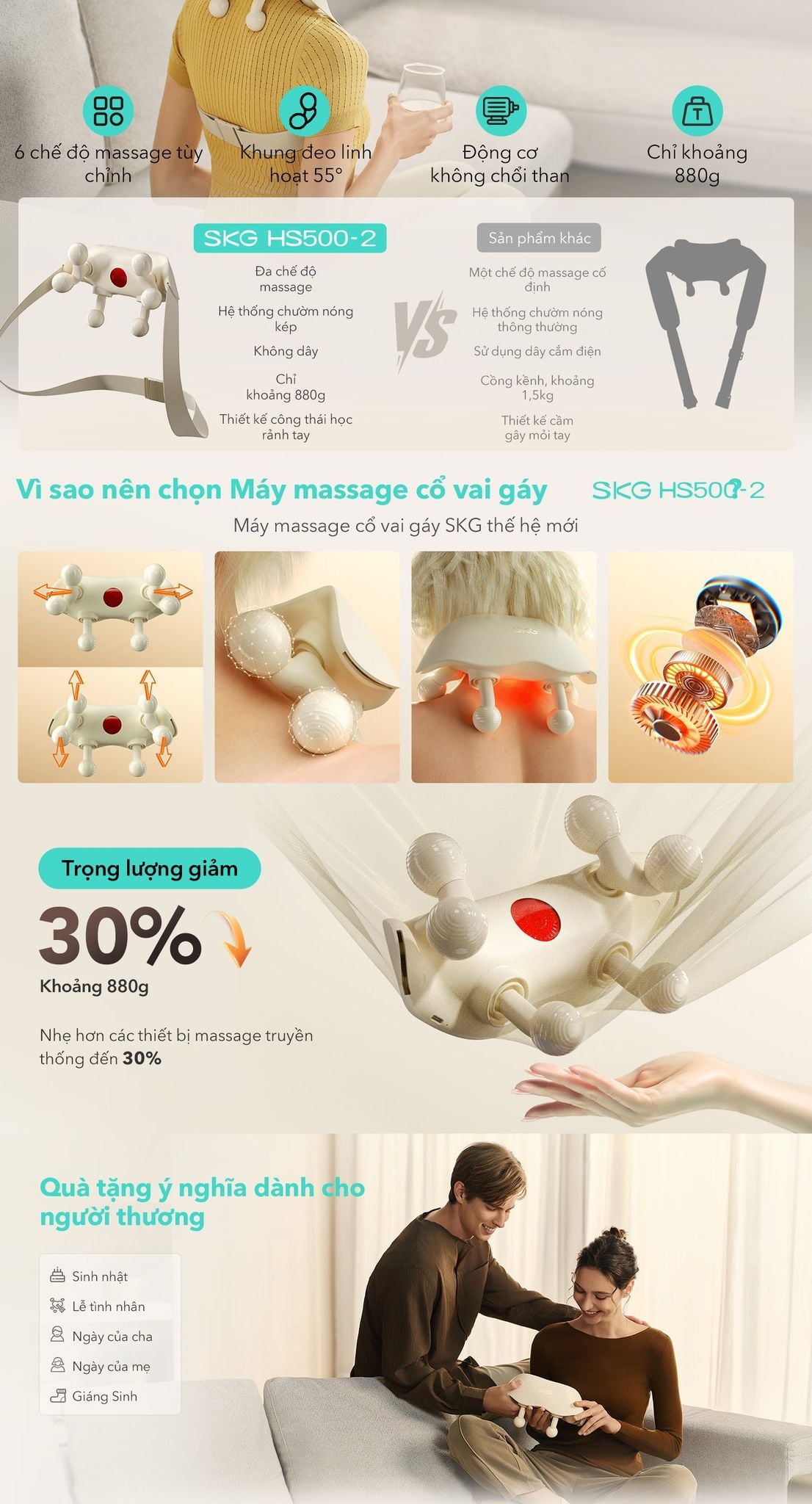Máy massage cổ vai gáy SKG HS500-2 giúp giải tỏa căng thẳng tức thì và mang lại cảm giác dễ chịu. Thiết kế đai đeo linh hoạt mang đến sự tiện lợi, có thể sử dụng mọi lúc mọi nơi.