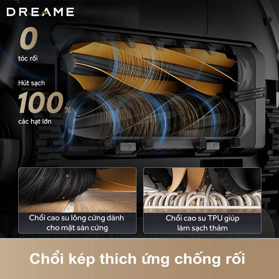 Sự kết hợp này vừa tăng hiệu quả làm sạch vừa giảm đáng kể tiếng ồn, tạo nên trải nghiệm dọn dẹp yên tĩnh và dễ chịu.