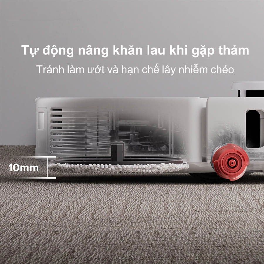 Bên cạnh đó, Qrevo C Pro tự động nâng khăn lau lên 10mm khi gặp thảm hoặc quay về trạm sạc, tránh làm ướt và hạn chế lây nhiễm chéo. Khi sạc, cây lau được nâng cao để thông gió tốt hơn, ngăn ẩm mốc và mùi khó chịu.