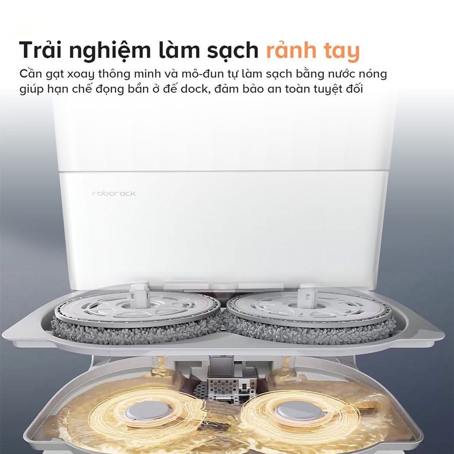 Dock sạc của robot Roborock Qrevo Edge 5V1 không chỉ hỗ trợ giặt giẻ lau mà còn tích hợp cần gạt xoay liên tục kết hợp với việc vệ sinh bằng nước nóng, giúp loại bỏ bụi bẩn và cặn bám hiệu quả. Nhờ module tự làm sạch tiên tiến, người dùng hầu như không cần phải can thiệp thủ công, mang đến sự tiện lợi tuyệt đối trong quá trình sử dụng.