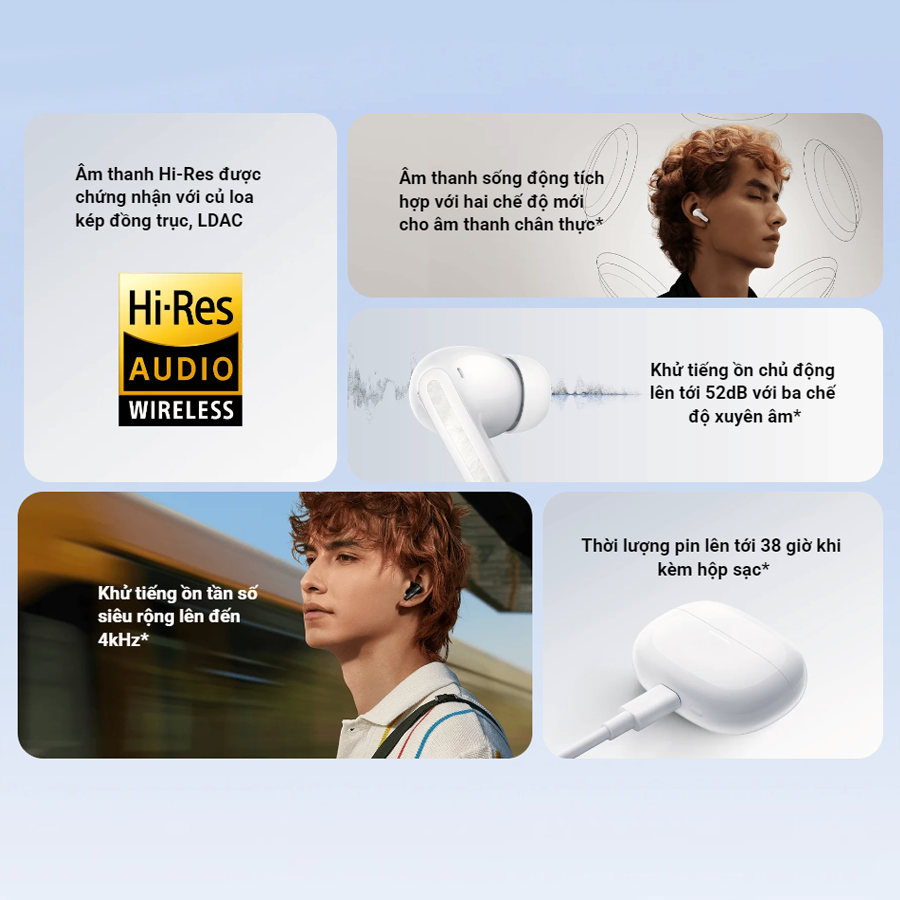 Tai nghe Redmi Buds 5 Pro vẫn tiếp tục hỗ trợ âm thanh không dây Hi-Res Audio Wireless. Đây là sự kế thừa tính năng từ những phiên bản cũ. Nhờ vậy, chất âm của thiết bị đảm bảo khi phát ra luôn rõ ràng, âm bổng lúc trong trẻo khi mạnh mẽ.
