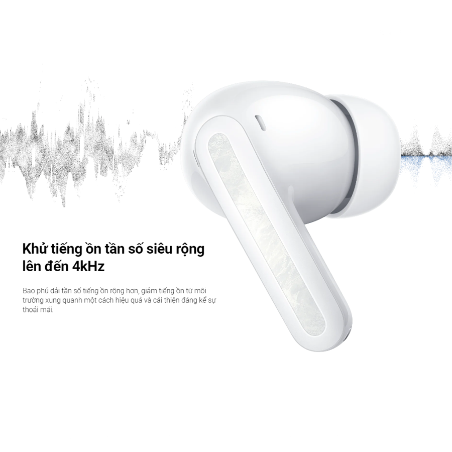 Trong trường hợp nếu bạn muốn một môi trường yên tĩnh và riêng biệt để học tập hoặc làm việc hoàn toàn có thể thoải mái tận hưởng khi bật ANC trên thiết bị này. Bên cạnh đó, Redmi Buds 5 Pro chính hãng còn có tính năng điều chỉnh AI thông minh và dải tần giảm nhiễu siêu rộng 4000Hz. Nó cho phép tai nghe tự điều chỉnh khả năng khử tiếng ồn trong từng môi trường âm thanh khác nhau, giúp cá nhân hóa trải nghiệm của người nghe.